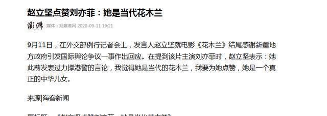 不久之后,在一场记者会上,时任外交部发言人赵立坚被记者就此事进行询问。 他言辞凿凿地表明:“刘亦菲是名副其实的中华儿女。”